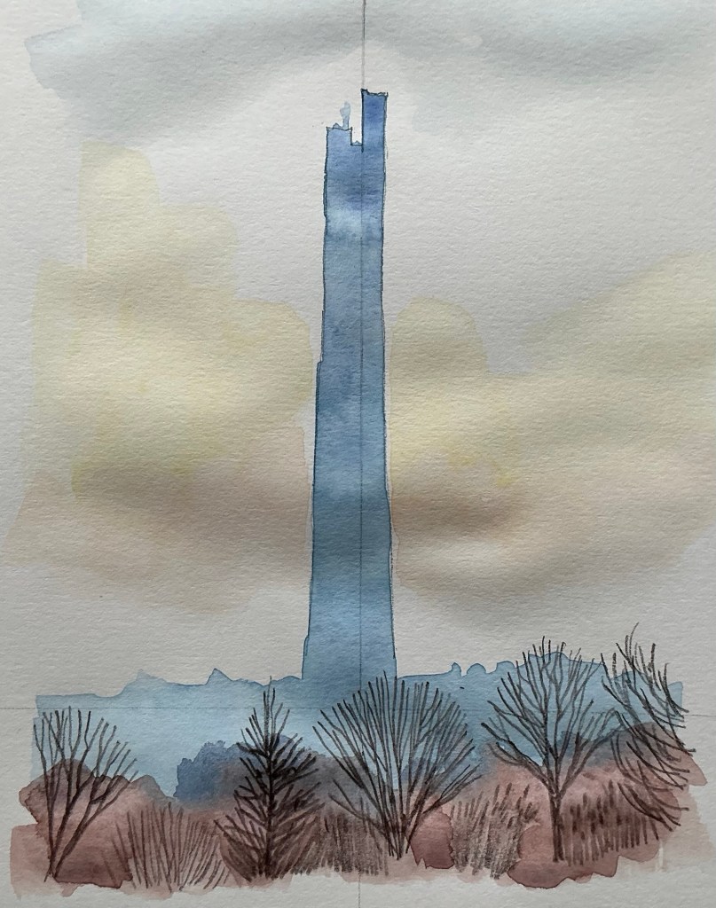 Lift tower from Barrack Road, from my sketch last week and from memory