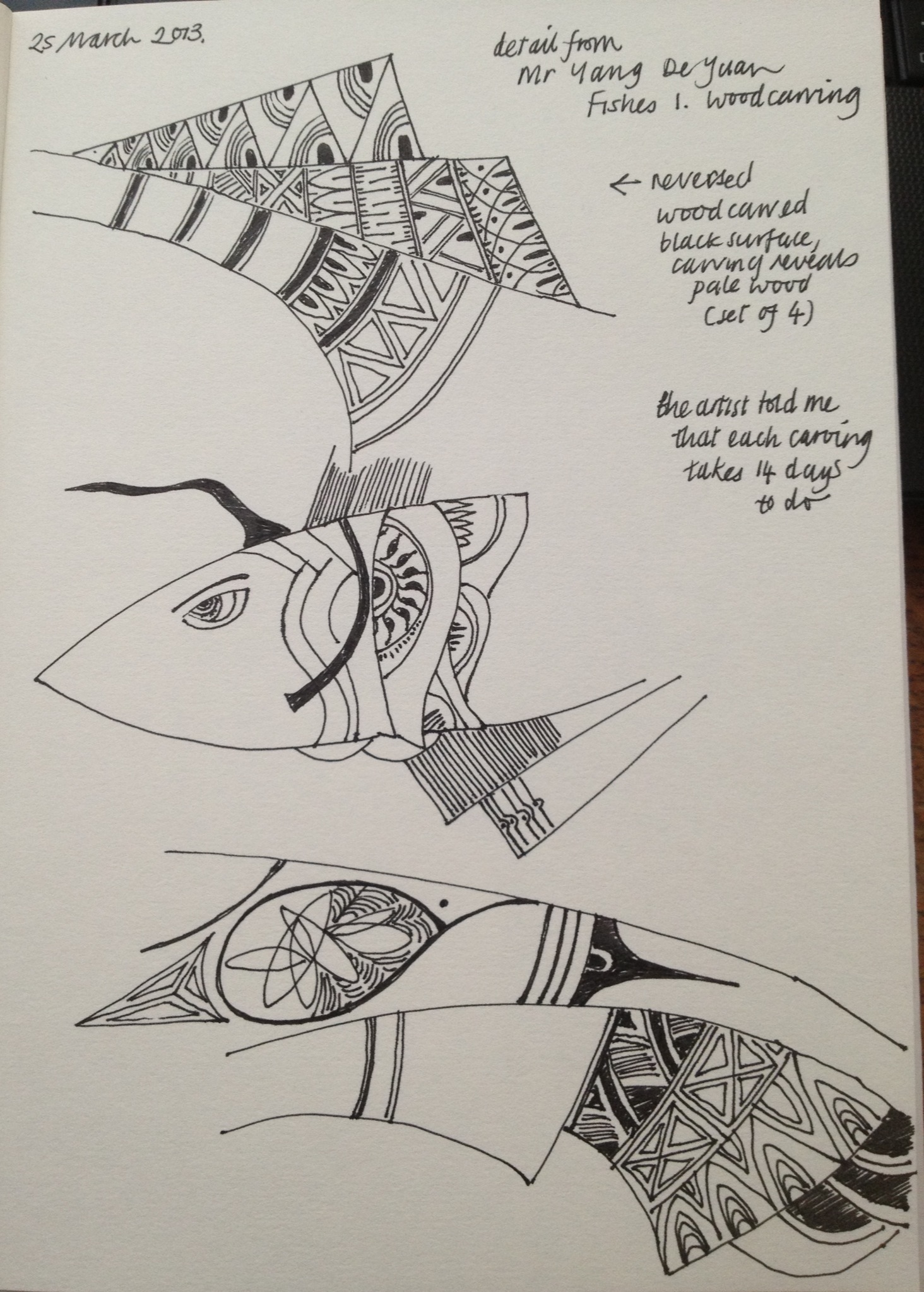 Details from Fish 1, wood carving by Mr Yang De Yuan, Avenue Gallery
