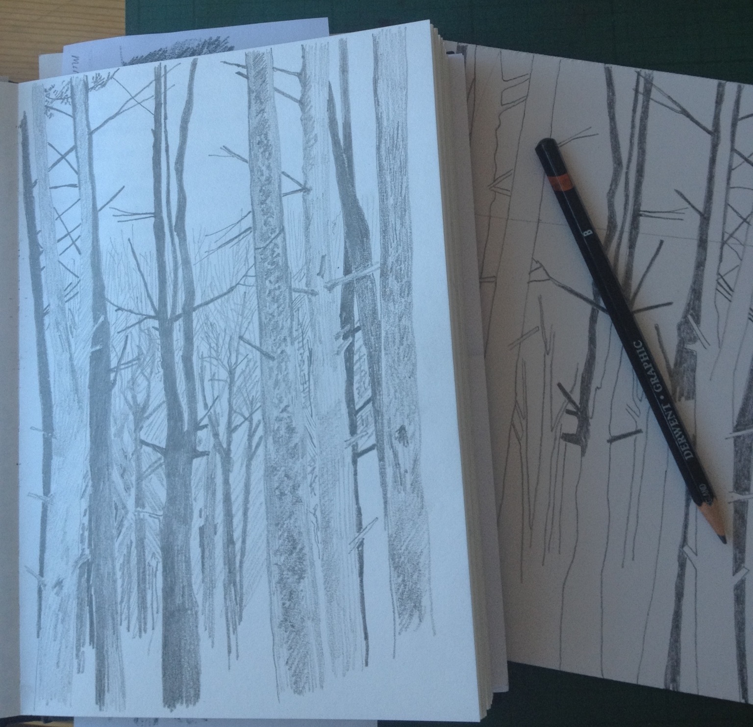 Sketching out a new collagraph inspired by a drawing of Salcey Forest
