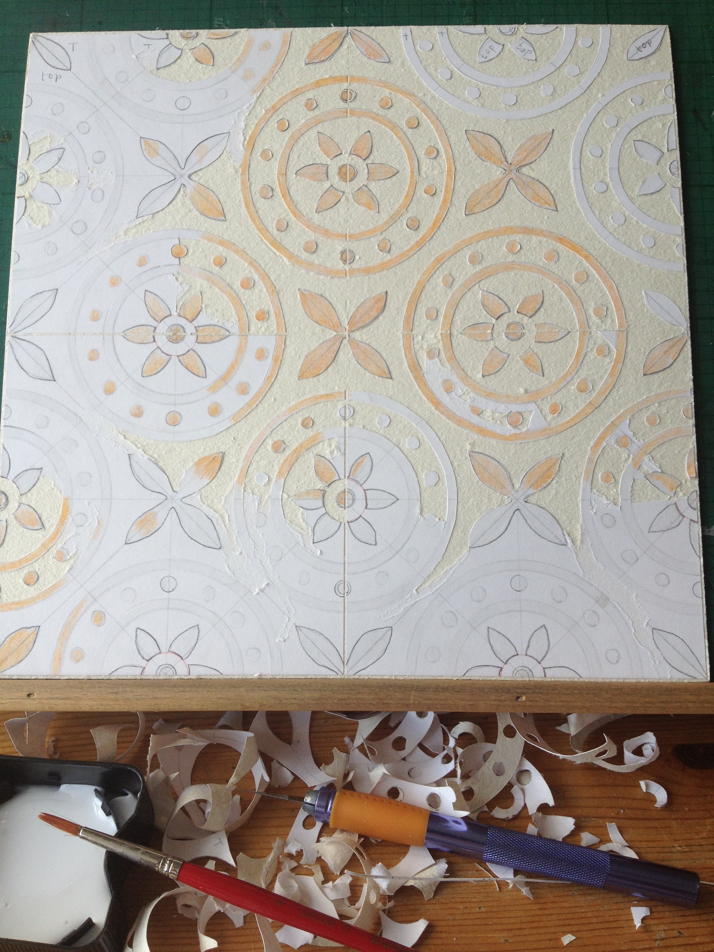‘Drawing’ with a knife and painting with glue – a new collagraph ready to print