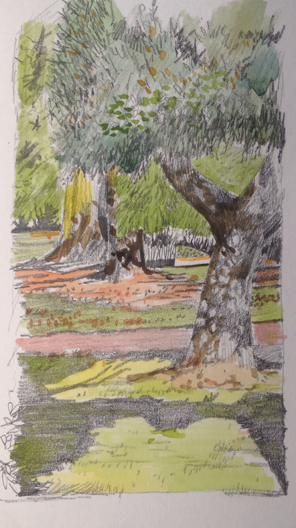 Pencil and watercolour