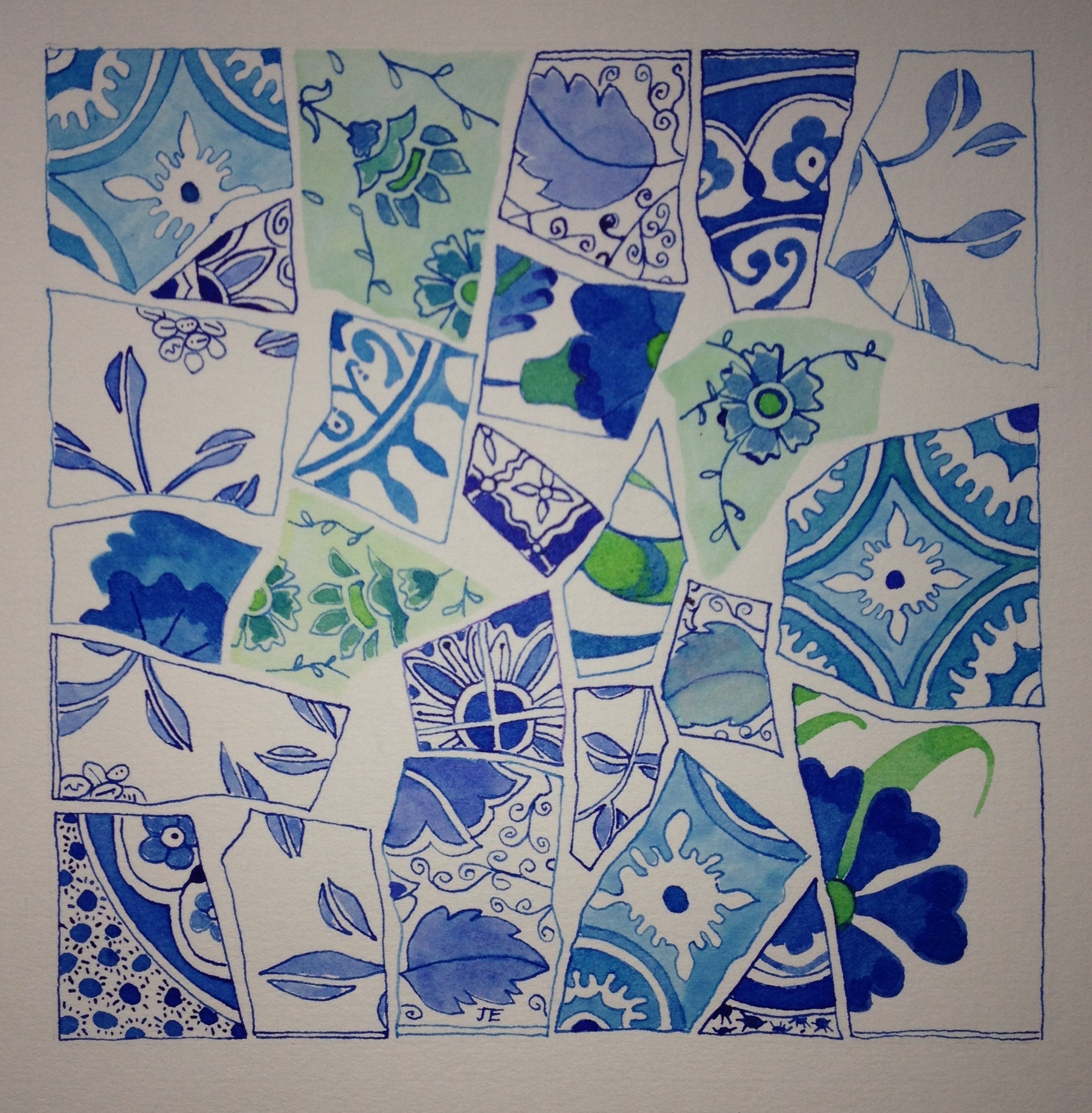 Broken blue tiles, ready for submission to the 15 x 15 exhibition