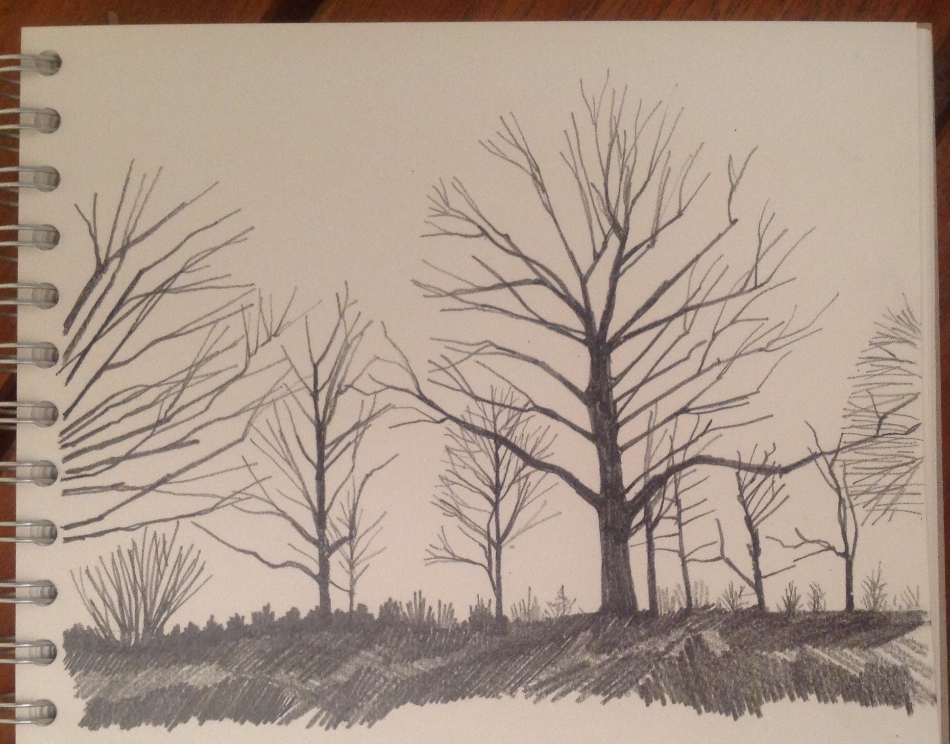Trees on the Racecourse (wonderful dark clear shapes against the blue sky just before sunset)