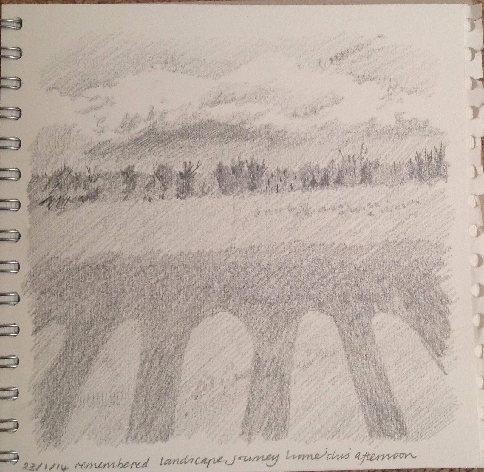 Remembered landscape – I was struck by the sudden view of this shadow on the field