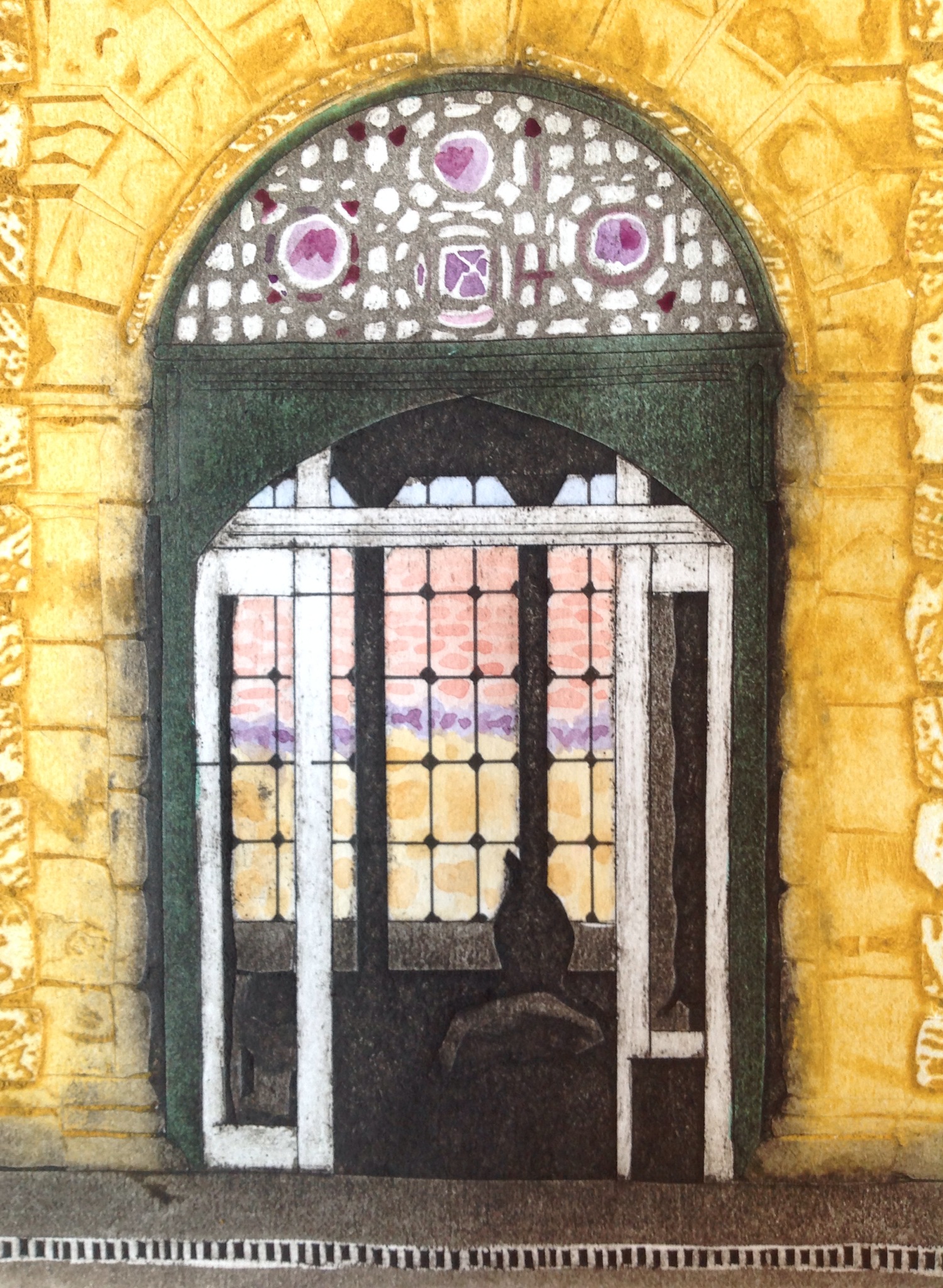 Try out of drawn and painted detail for a new collagraph