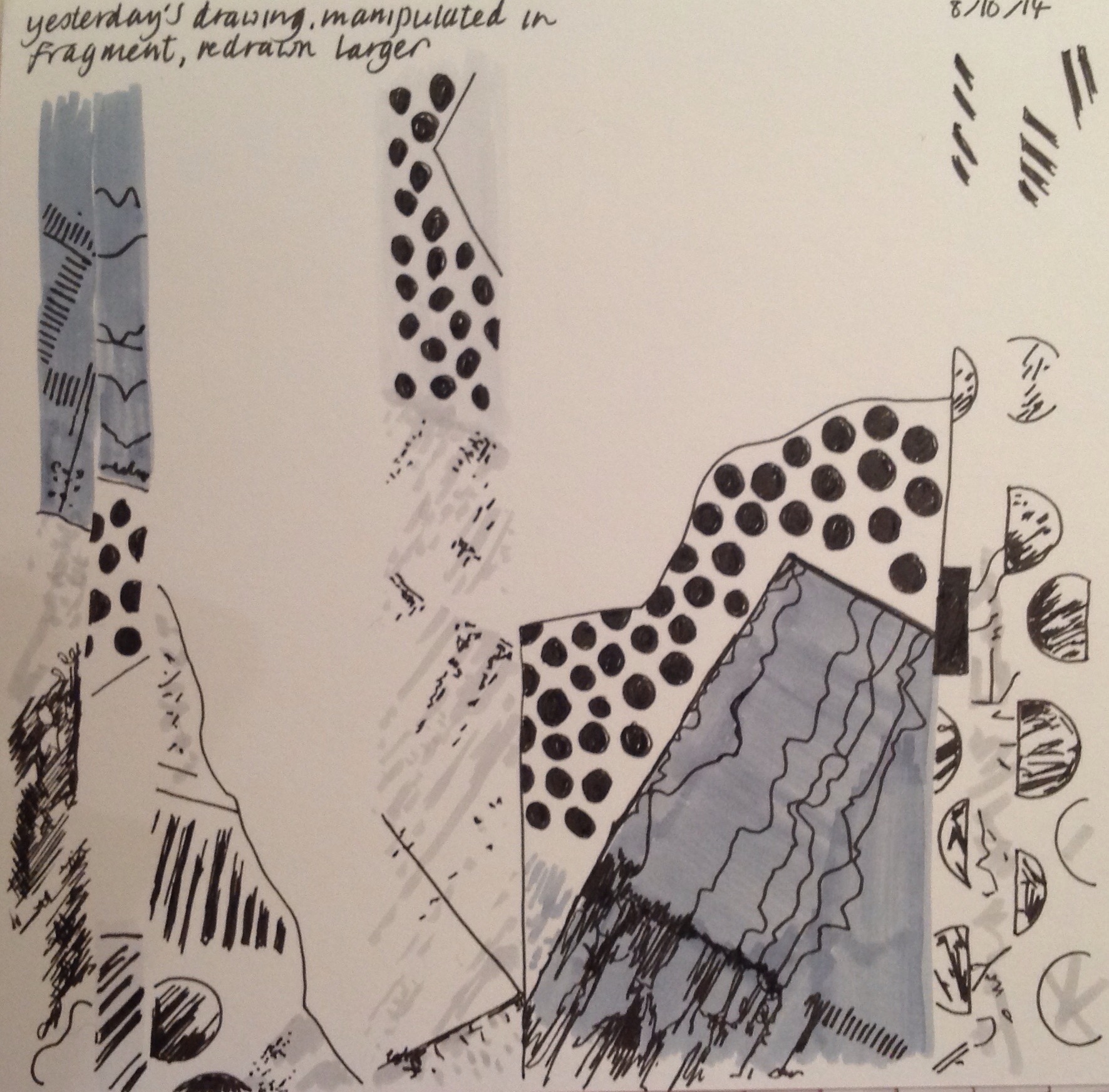 Getting more abstract – Yesterday’s drawing, put through the Fragment app, then magnified and redrawn.