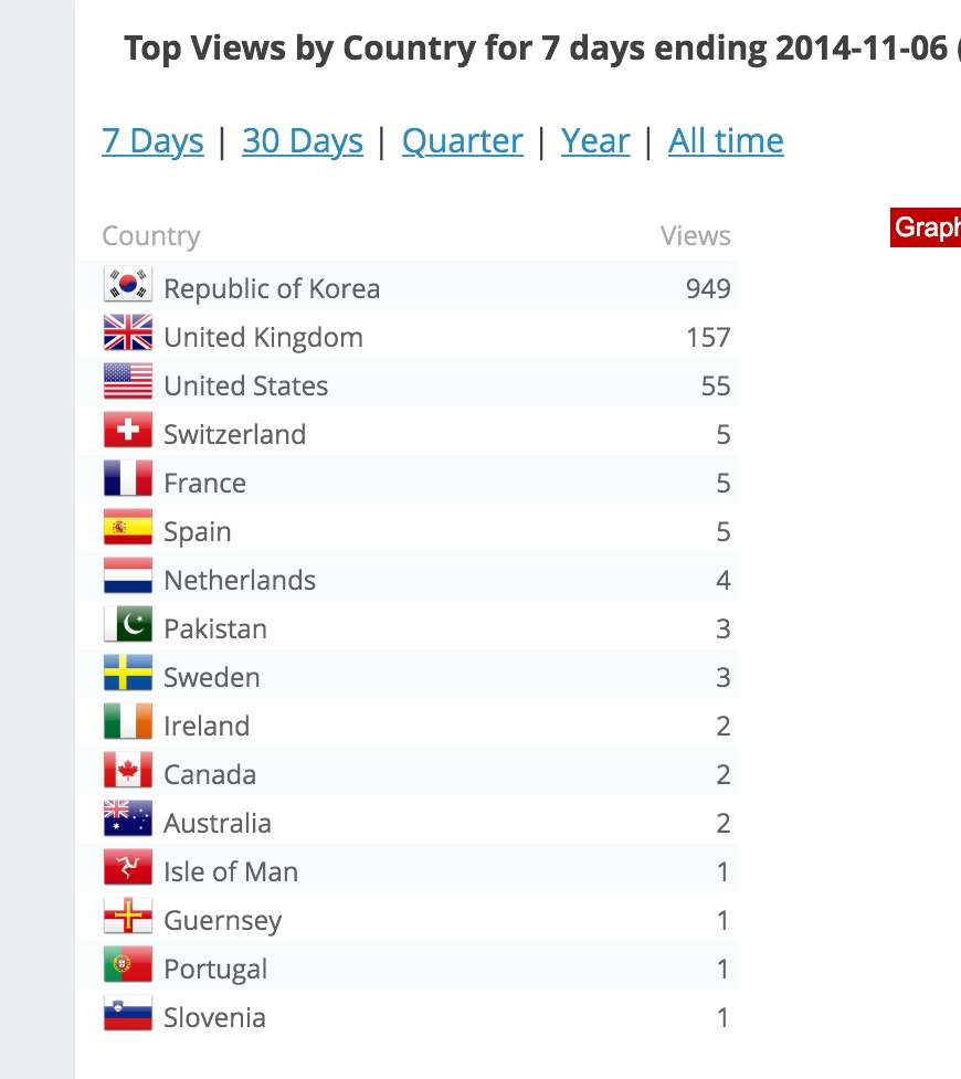 Yesterday and today I’ve had lots of views from the Republic of Korea.