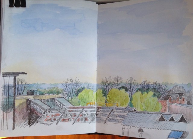 This entry was posted in #buildApril, #thedailysketch, art, artist, Building, colour, Drawing Outside:Northants, drawings, every day, line, Northampton, observation, pencil, sky, tone, trees, Watercolour and tagged , , , , , , , . Bookmark the permalink.