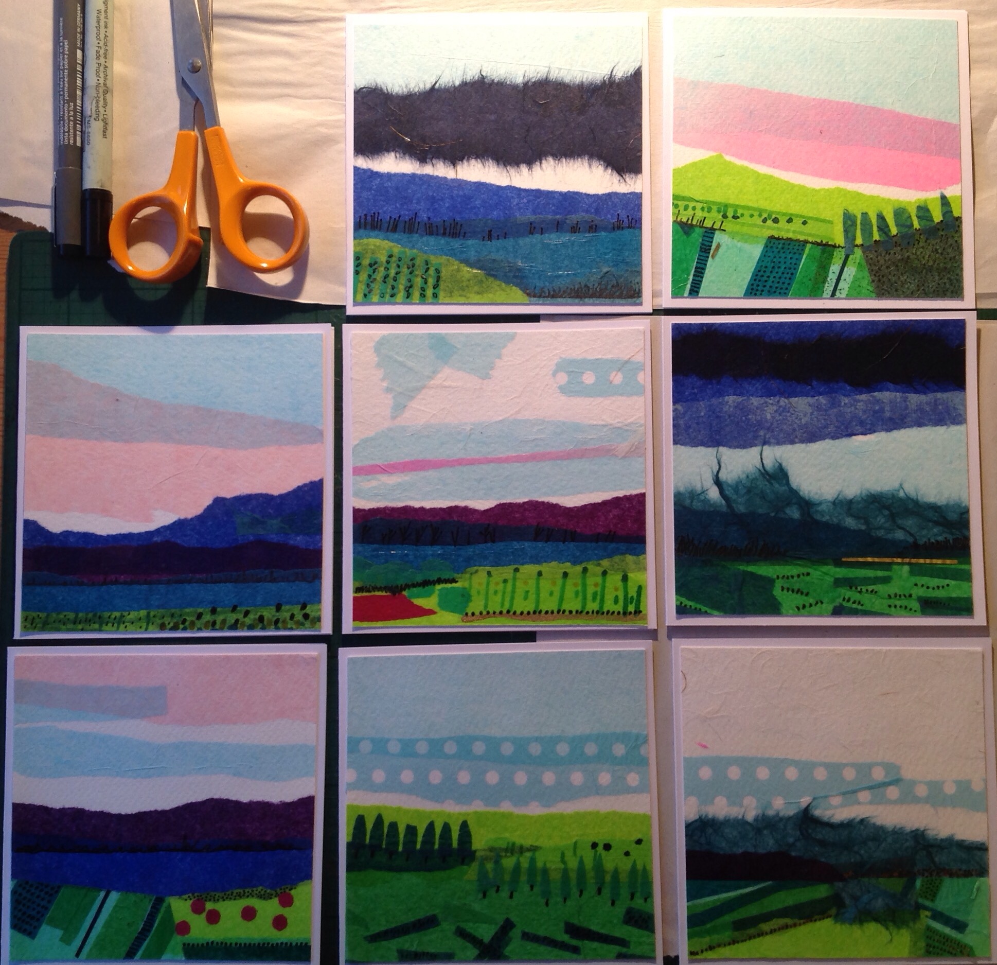 I made some more by using landscape bits and pieces cut from magazines , bits cut from old maps all glued into new combinations!