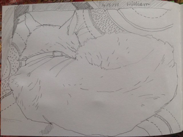 Lovely – ears are perfect, listening to you sketch while he pretends to snooze!