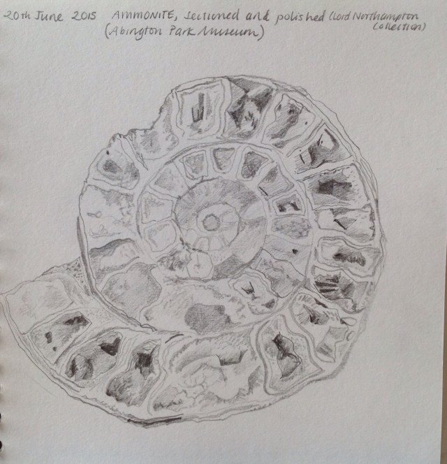 It was a very rainy day so the Summer Bazaar was quieter than expected. Luckily I was near a case of interesting fossils so I could spend some time drawing.