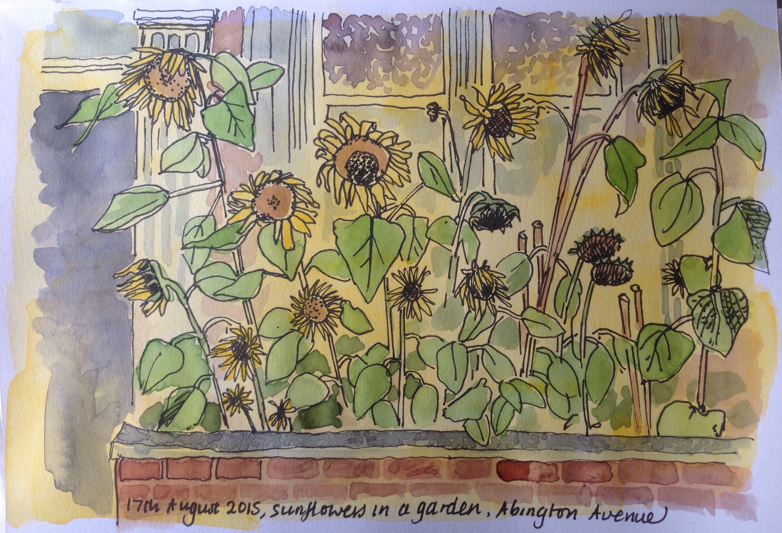I’ve been driving and walking past these sunflowers for a few weeks now – I should have drawn them a few weeks ago when they were at their best!