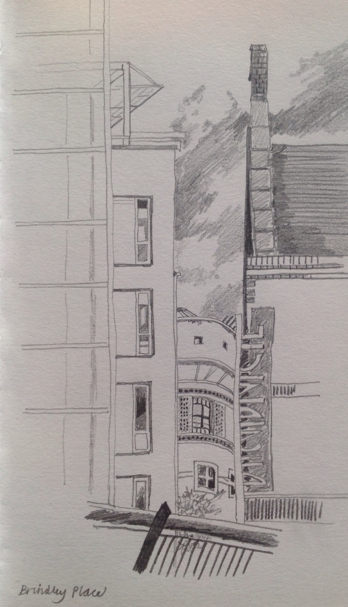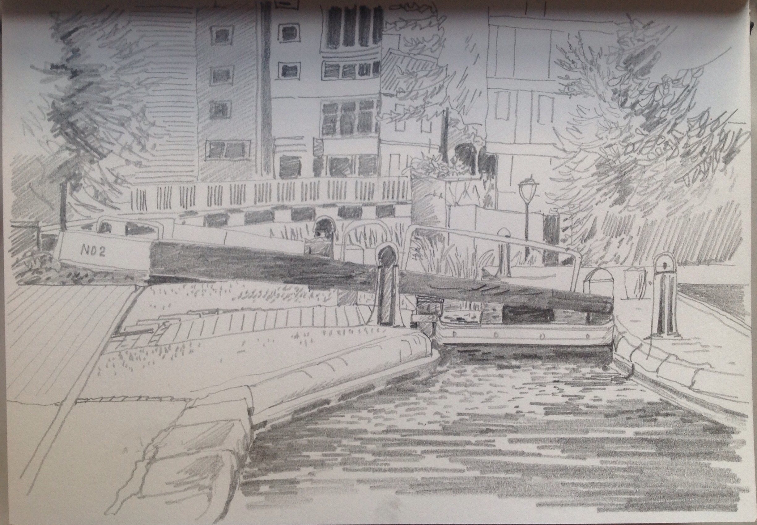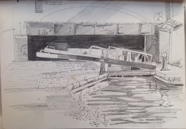 Today I went on a course run by the RBSA and taught by artist, Wayne Attwood. We walked along the canals, stopping to draw as we went. I saw lots that I’d like to back and draw in the future. There’s a lot of machinery to look at and try to understand that makes drawing the canal very challenging. The atmosphere was lovely – boats going along, people and their dogs, and we were very lucky with the weather.