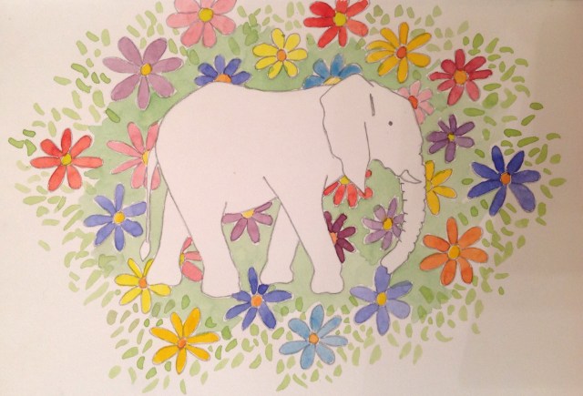 White elephant in the flowers
