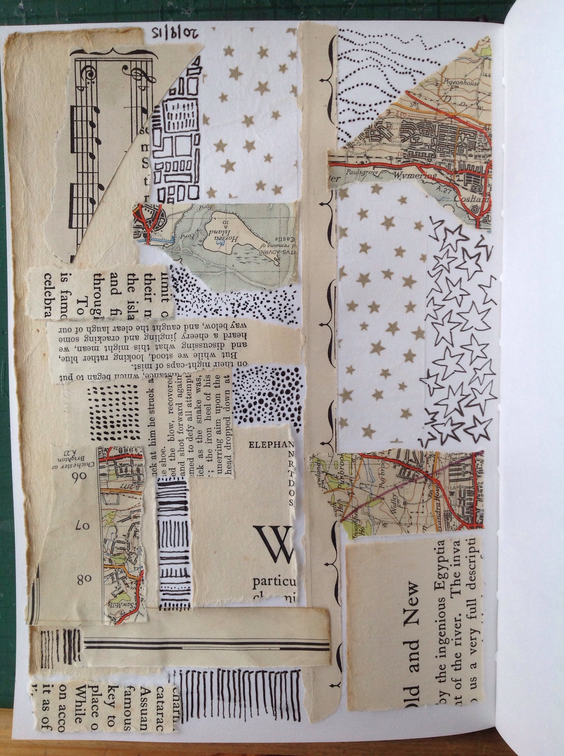 Random collage and drawing using bits left over from the weekend printmaking binge.