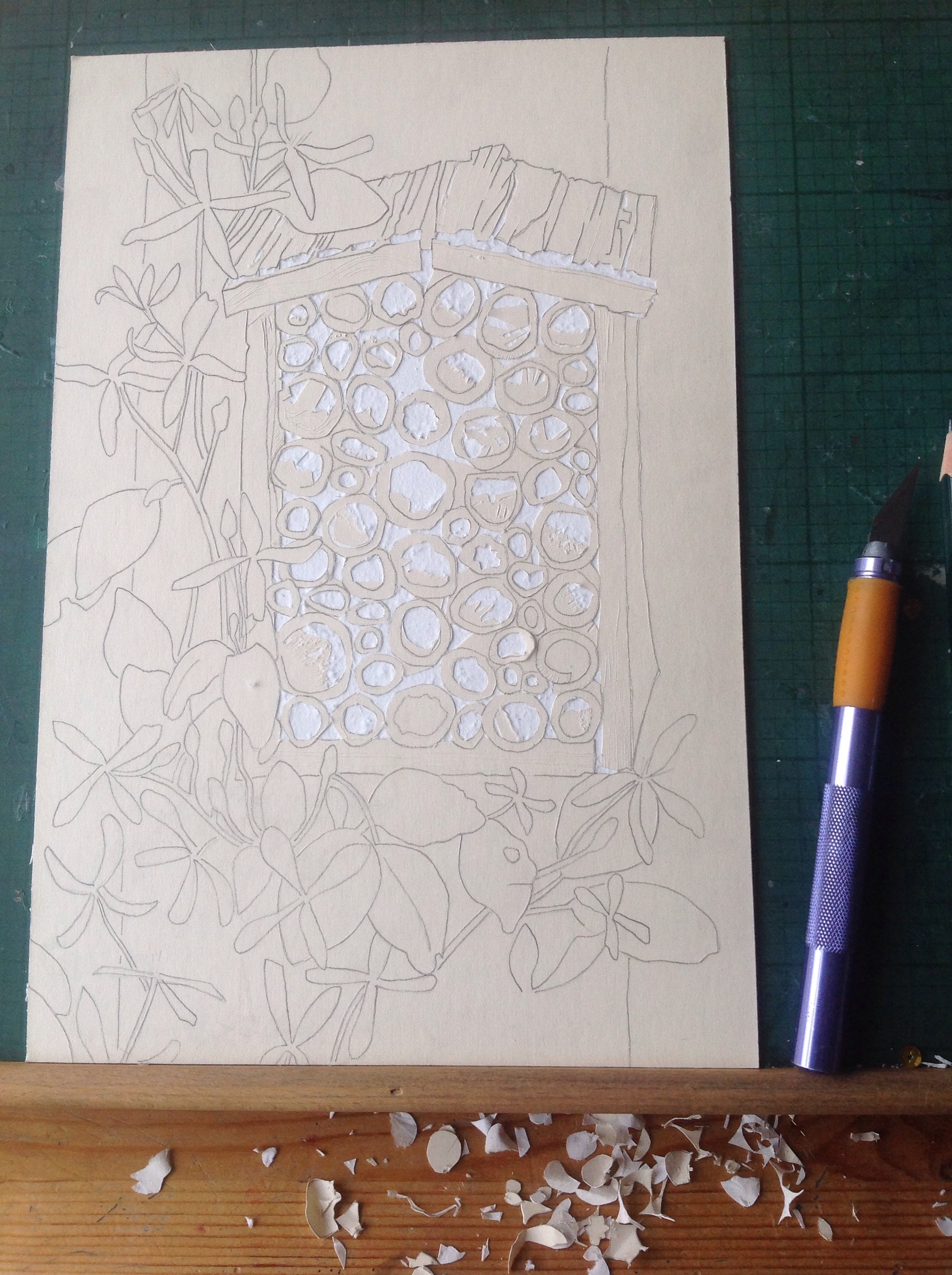 It’s mountboard. If you cut away the top surface it prints dark, the surface itself prints a mid tone and then I paint PVA on which resists the ink and prints white. A long way to go before printing though!
