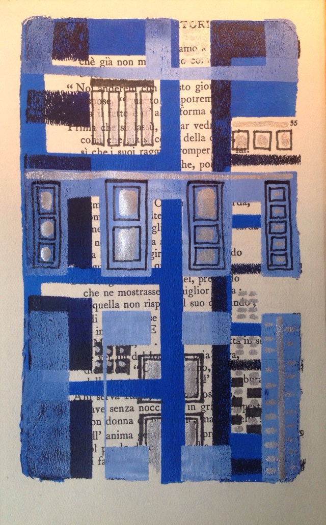 Gelli plate monoprint, silver ink and black pen