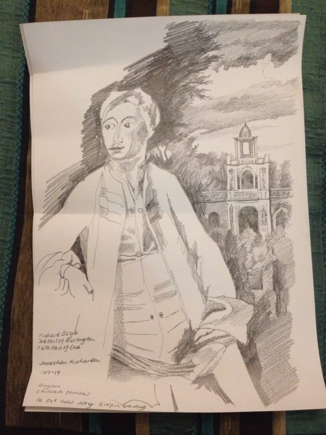 • It was done in the National Portrait Gallery drop in drawing that takes place on Friday evenings. We had to draw a portrait and explore the space within it. I became more interested in the landscape beyond the person, I have to say!