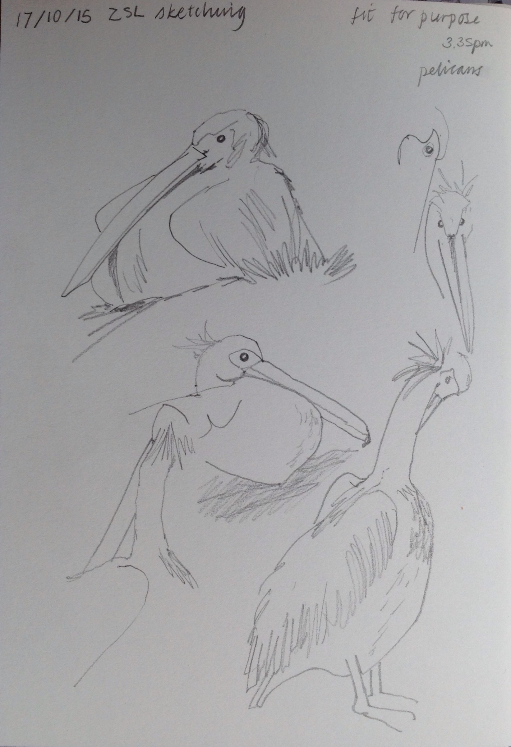 After the sketching day was finished we continued to enjoy the zoo and sure enough couldn’t leave before drawing again! This time we looked at the Pelicans – such amazing birds. They were mainly still or grooming following a repeated set of movements.
