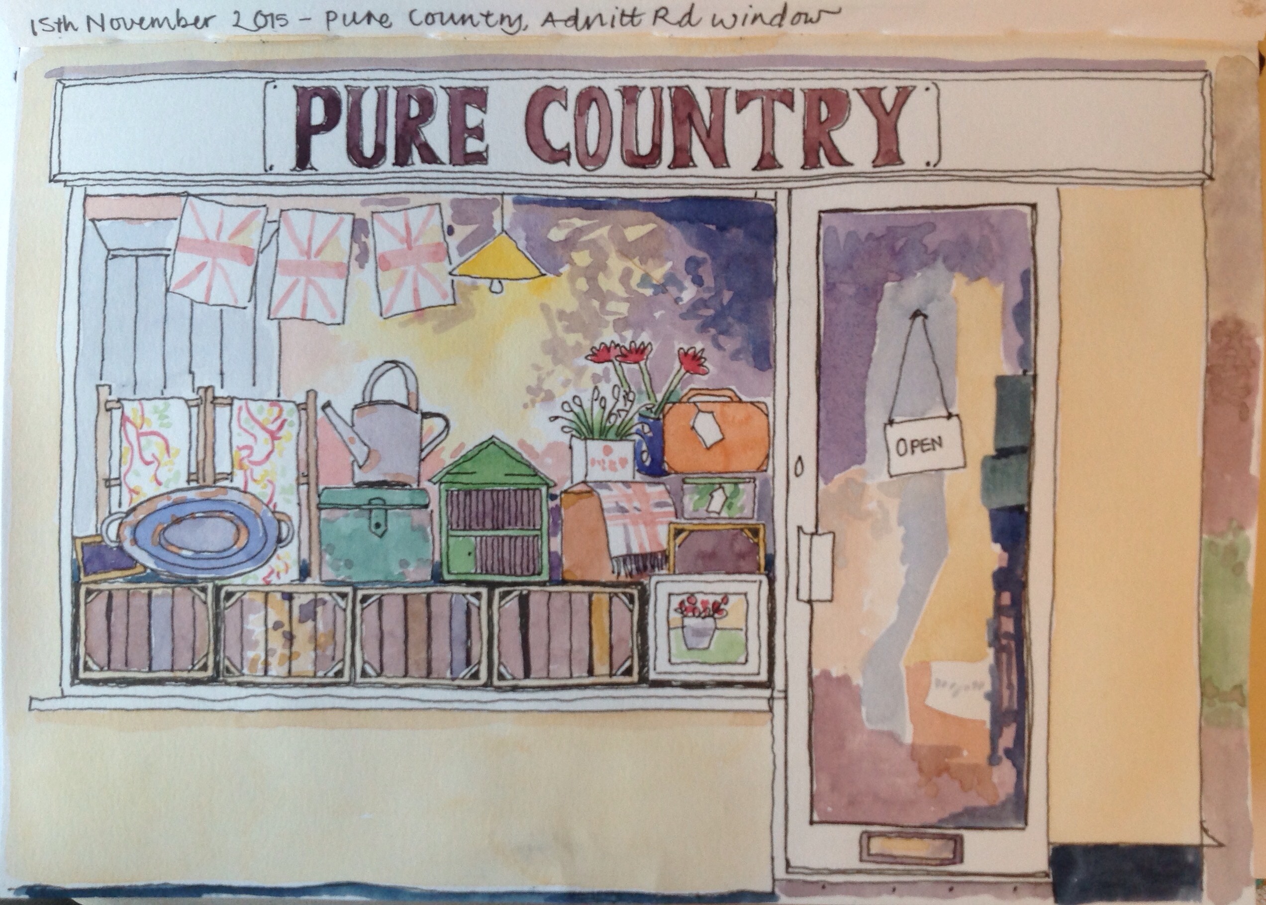 I couldn’t resist going back to draw the other window! I went in and the shop is great inside – full of interesting things, the perfect place for Christmas shopping.