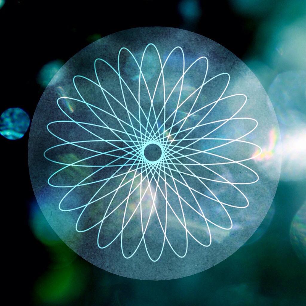 I made a sort of Spirograph pattern using the app Uberdoodle, then I put that into the app Shape That and made it into a circle on a black background, then I put that into the app DistressedFX to make the light effects – so lots of experimenting. I’ve made a bigger version to go in Charlotte Vogel’s advent calendar