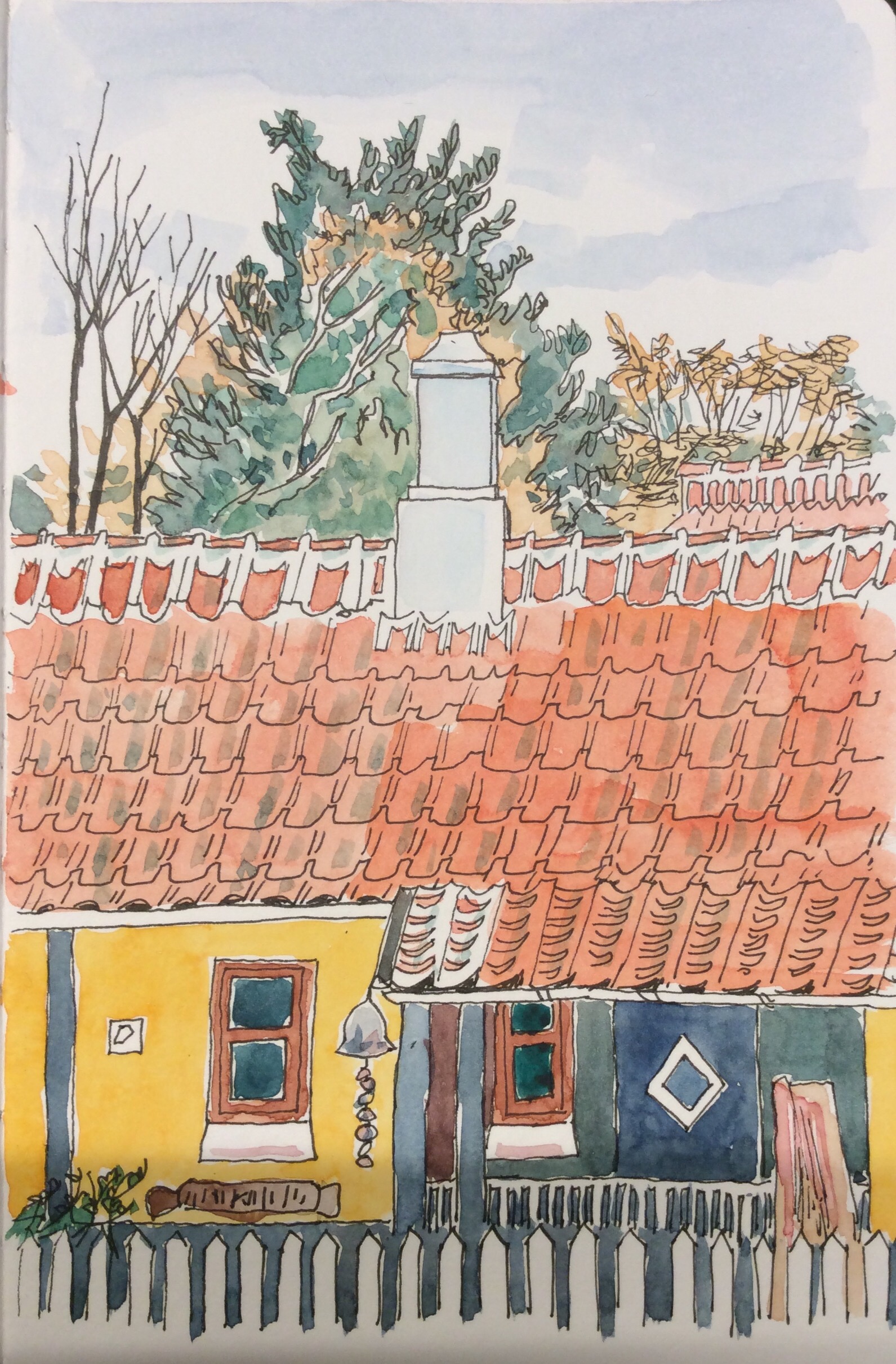 Pen and watercolour
