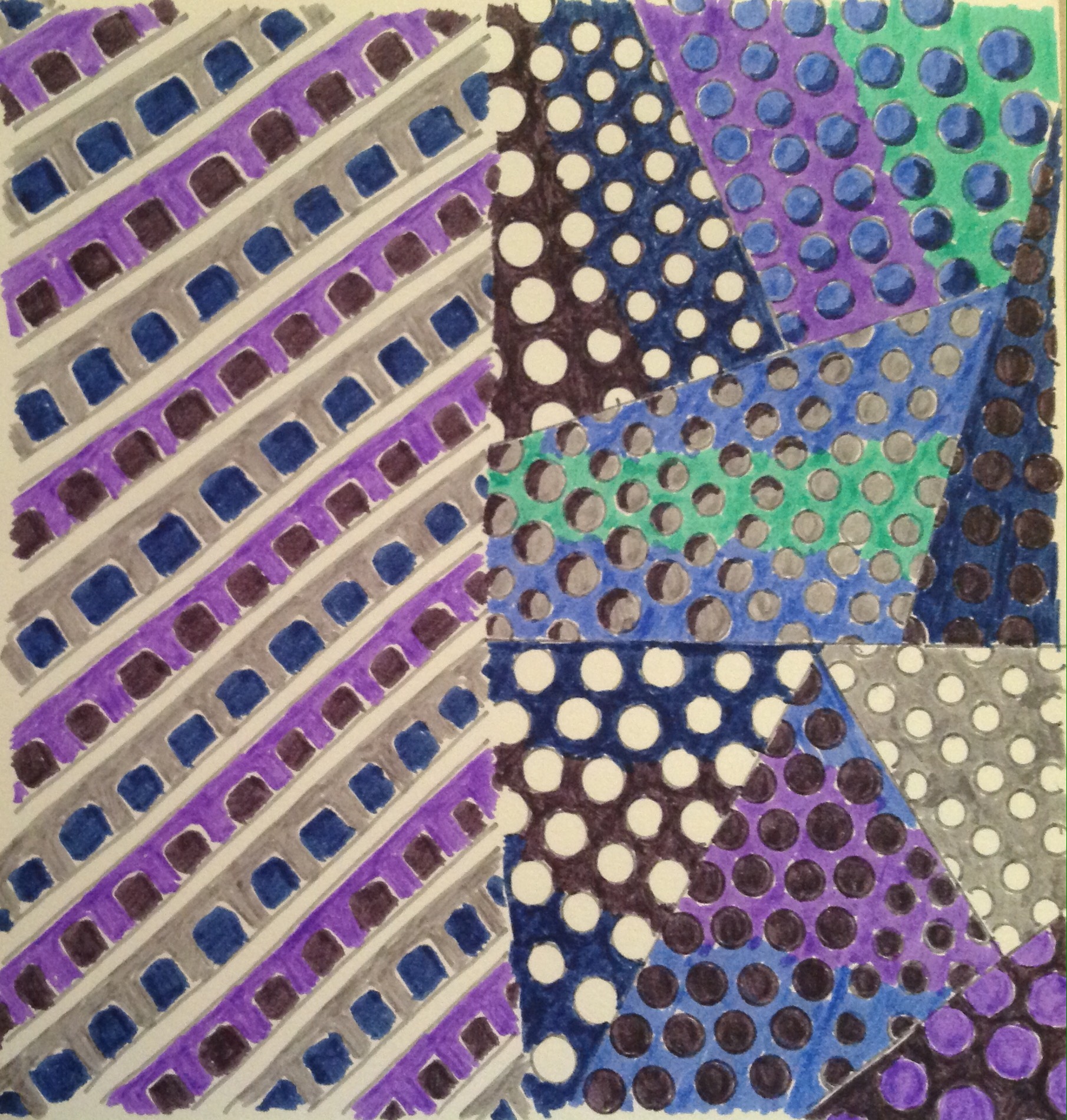 It’s strange you should say that. It’s inspired by a tv programme I watch where the relationships between characters is often indicated by the colours and patterns in the clothes they wear. Here it’s someone’s tie and someone else’s shirt.