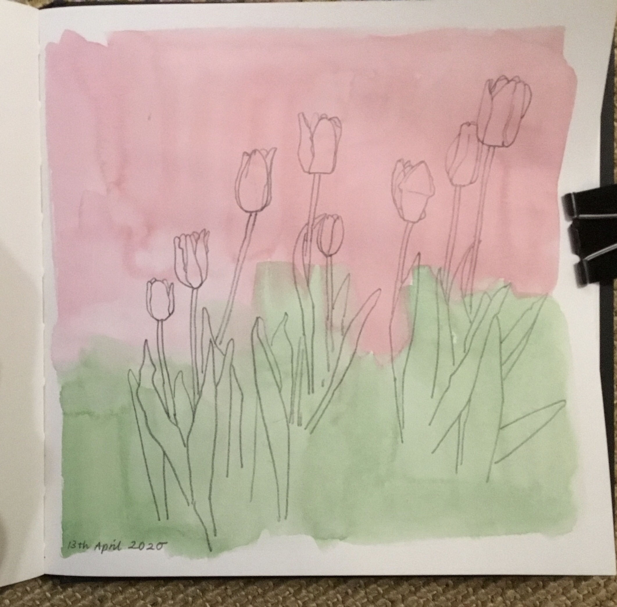 Pencil over watercolour wash
