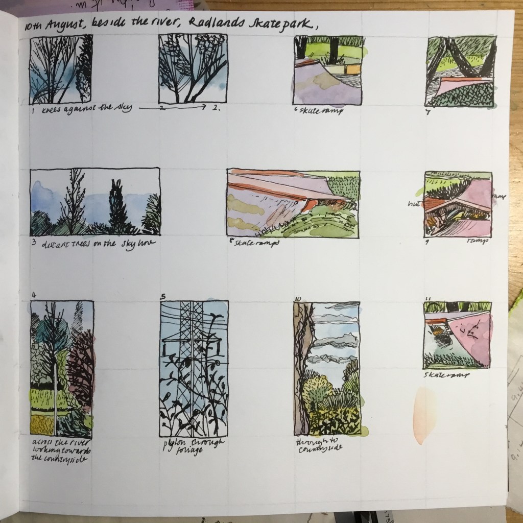 At the skatepark and the side of the river (day 7 of mixed media thumbnails)