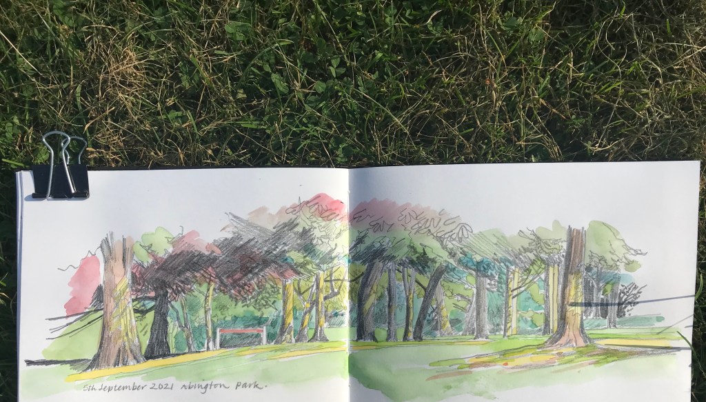 I made these two sketches in Abington Park, Northampton, as part of #sketchacrosstheworld2021 on Instagram.
