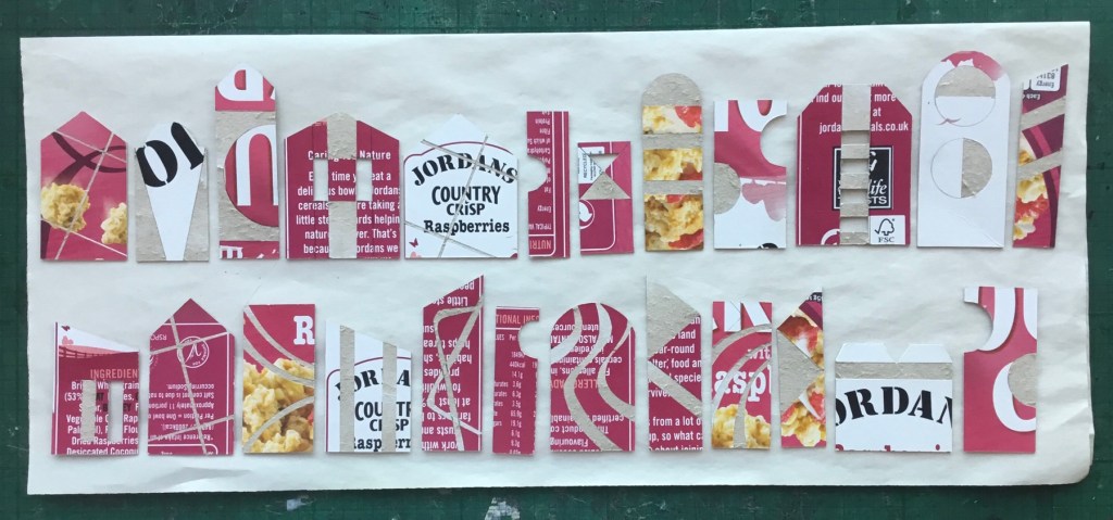 Craft knife, cereal box card, Cranfield relief ink