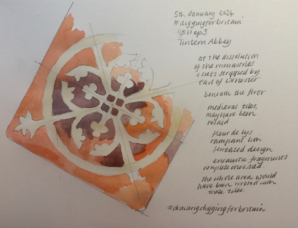 Encaustic tile, excavated from Tintern Abbey #drawingdiggingforbritain