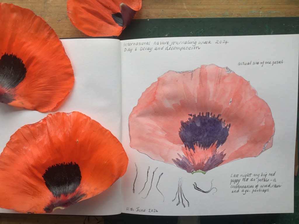 Day 6 #INJW decay and decomposition – overnight the big poppy lost its petals, the beginning of the decay and decomposition process