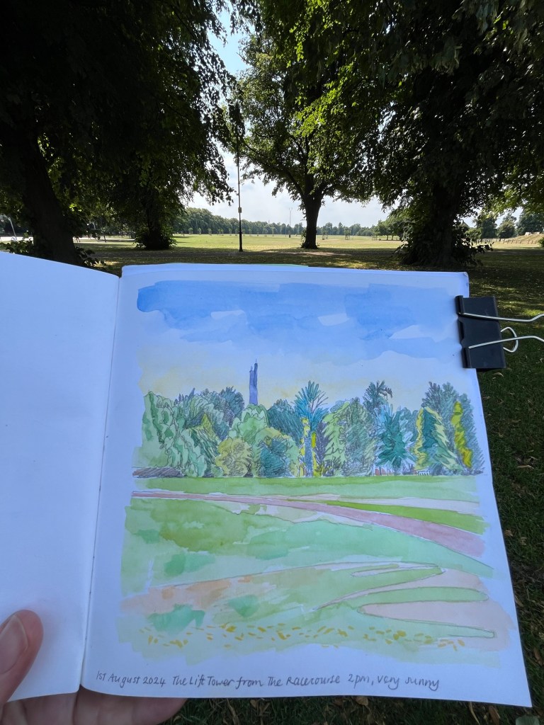 Lift Tower from The Racecourse, 2pm, very sunny