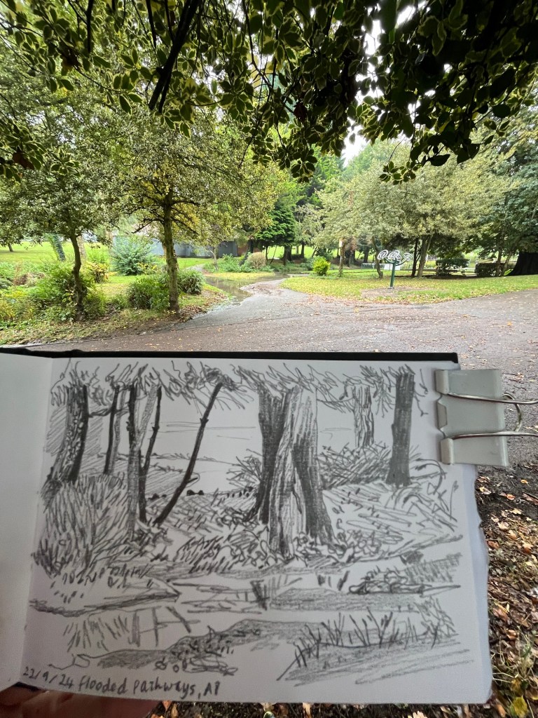 Flooded pathways in Abington Park