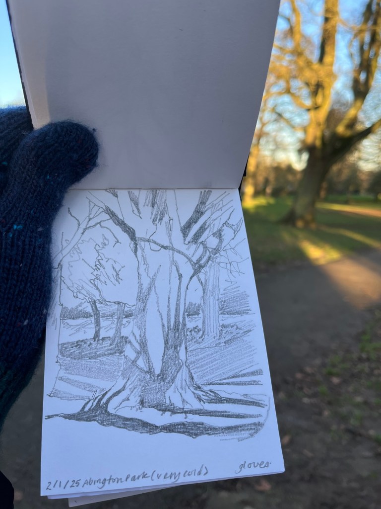 Shadows on the tree, Abington Park , outside, wearing gloves